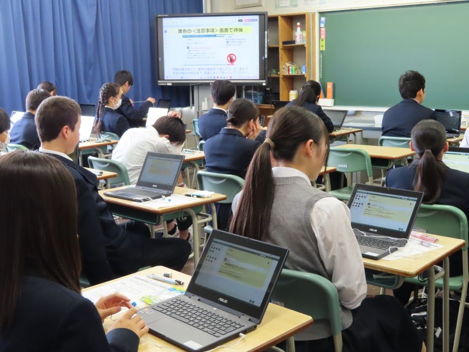 3年生を対象に、全国学力・学習状況調査を実施しました。国語、数学は筆記問題、英語は個人端末を利用したCBT式の調査が行われ、生徒たちは緊張感をもちつつも、これまでの学習の成果を発揮しようと真剣に取り組んでいました。整然とした教室内で、時間配分を意識して粘り強く考える姿や、端末を丁寧に操作する様子が印象的でした。結果は後日届きますが、今回の結果を今後の授業づくりに生かしていきます。