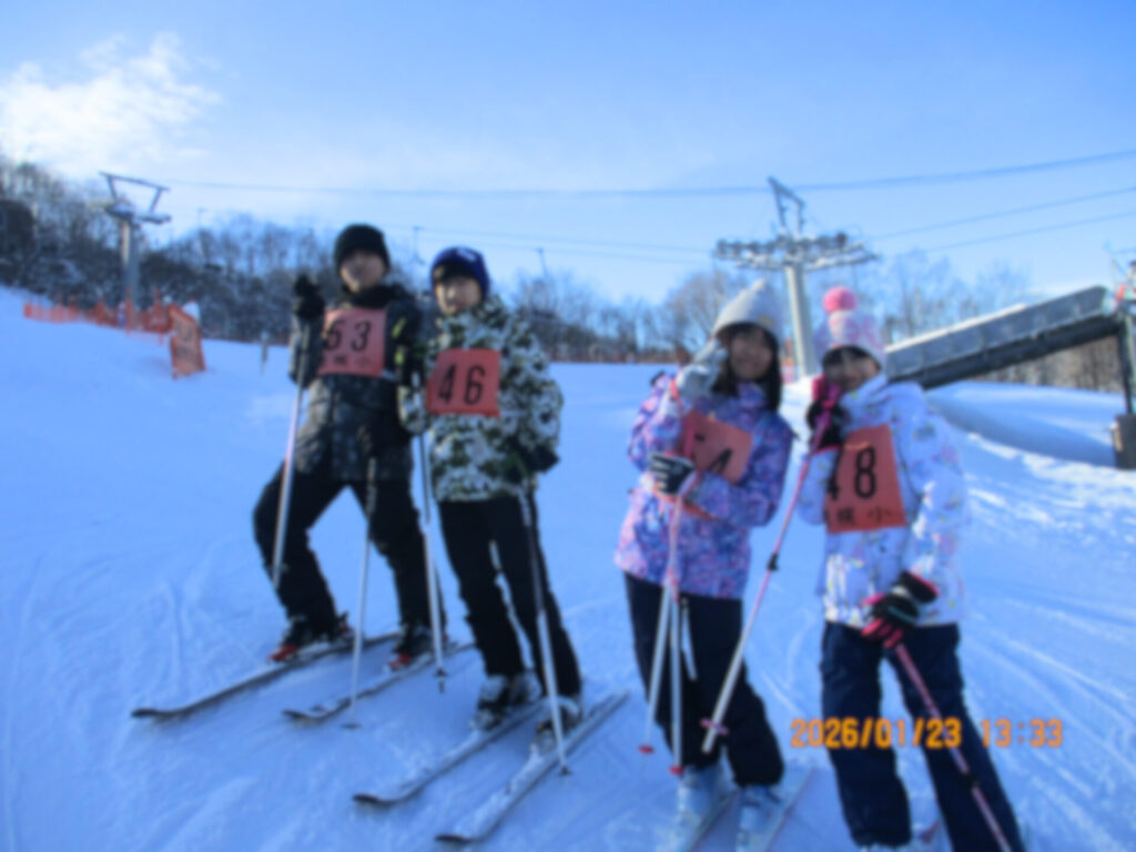 絶好のスキー日和に恵まれ、桂沢国際スキー場にて今年度1回目のスキー学習を実施することができました。今回も地域や保護者の皆様に指導ボランティアとしてご協力いただいたおかげで、手厚い少人数グループでの指導が実現しました。子供たちはみるみるコツを掴み、短時間でぐんと上達した様子が見られました。ご協力いただいた皆様、温かいご指導を本当にありがとうございました。