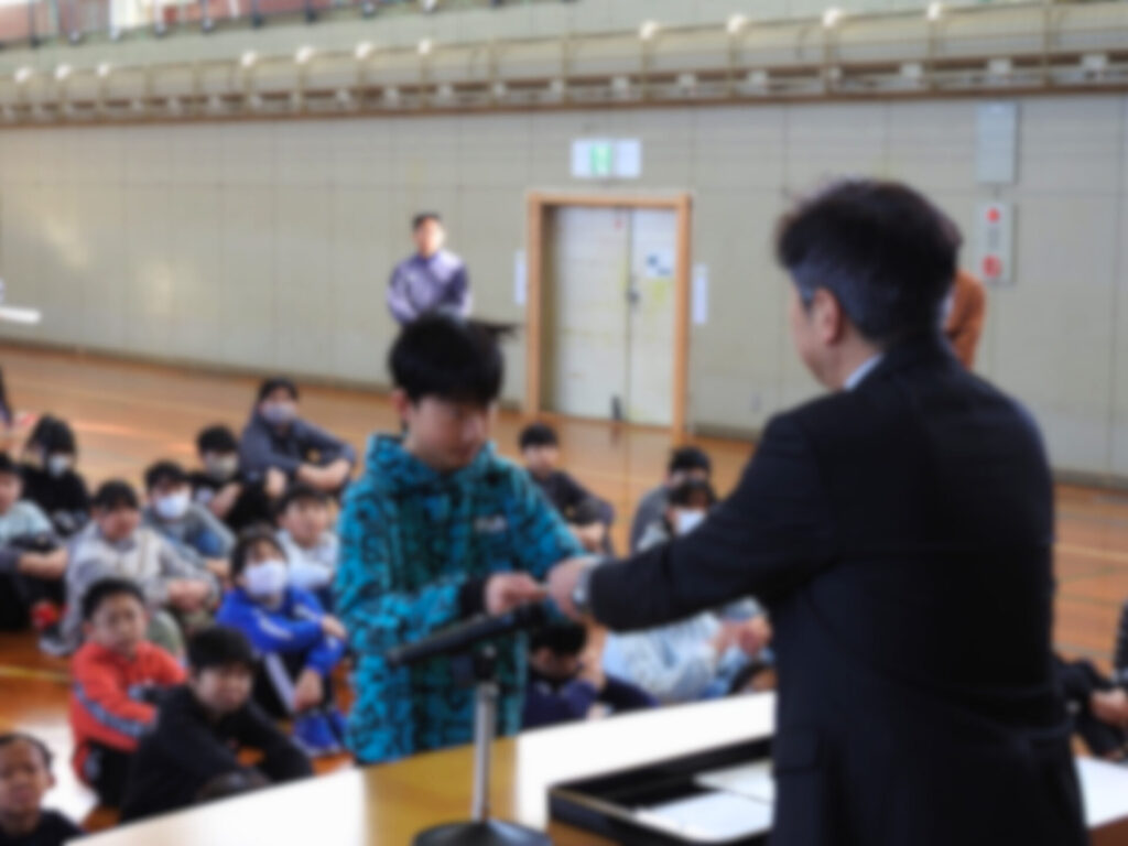 令和8年度前期児童会書記局の認証式が行われました。 新会長からは「学校をよりよくしていきたい」という力強い決意とともに、全校児童へ協力の呼びかけがありました。新しいリーダーを中心に、学校がどう変わっていくのか今から楽しみです。