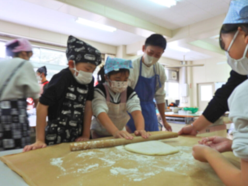 3年生が学級レクでうどん作りに挑戦しました。今回も、小麦の種まきの段階から関わってくださっている地域の方にレクチャーしていただき、親子で楽しくうどん作りを進めました。包丁で麺を切るときには、慣れない手つきで頑張る子どもたちを、保護者の方が優しいまなざしで見守ったり、そっと手を添えて手伝ったりする姿が見られました。穏やかで笑顔あふれる、あたたかい時間となりました。