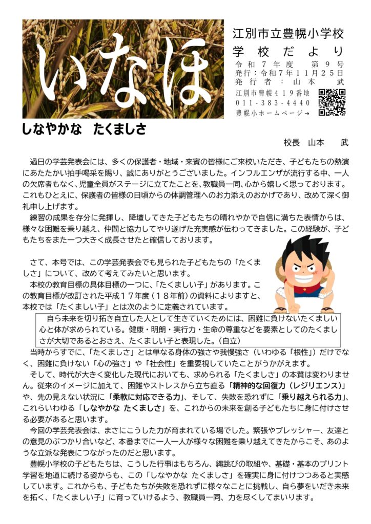 緑広がる大地の中で 夢を抱き 未来を拓く 豊幌っ子                                  ○かんがえる子 ○たすけあう子 ○たくましい子