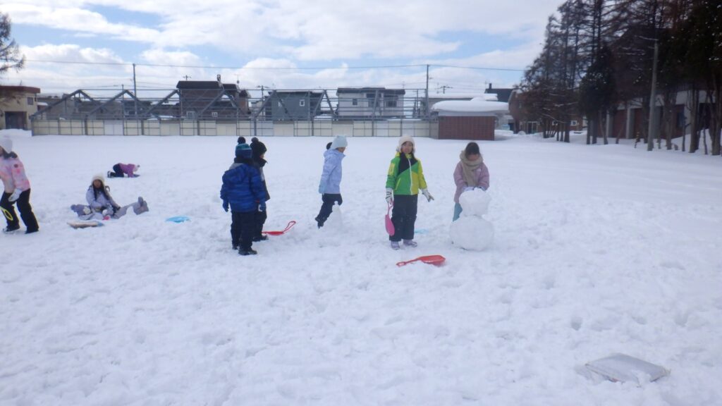 2年生は3・4時間目に、生活科の学習で雪遊びを存分に楽しみました。雪合戦や雪だるま作り、そり滑りなど、友達と仲良く活動する姿が見られました。あちらこちらで子どもたちのとびっきりの笑顔がはじける、充実した時間となりました。