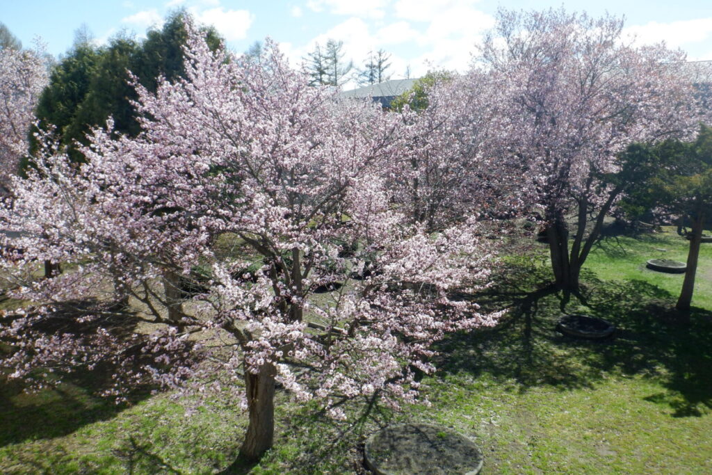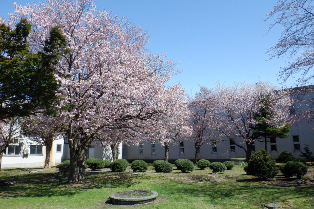 対雁小の中庭の桜が満開になりました。