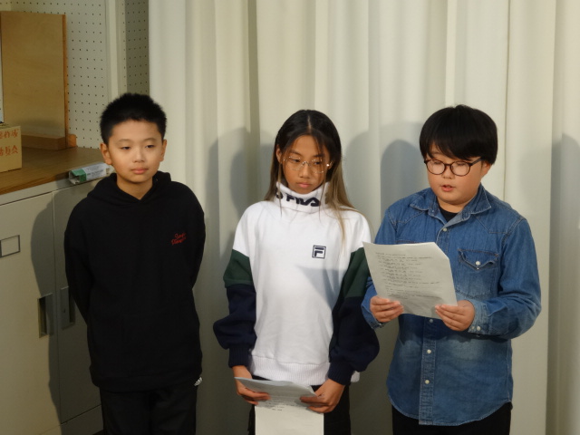 後期児童会三役、各委員会委員長の認証式のビデオ撮影がありました。三役、委員長とも、これからどのようにして対雁小学校をより良い学校にしていきたいか抱負を発表していました。とても堂々とした発表の様子で、全校児童に見せる日が待ち遠しいです。児童会三役、委員長の皆さんのリーダーシップに期待しています。