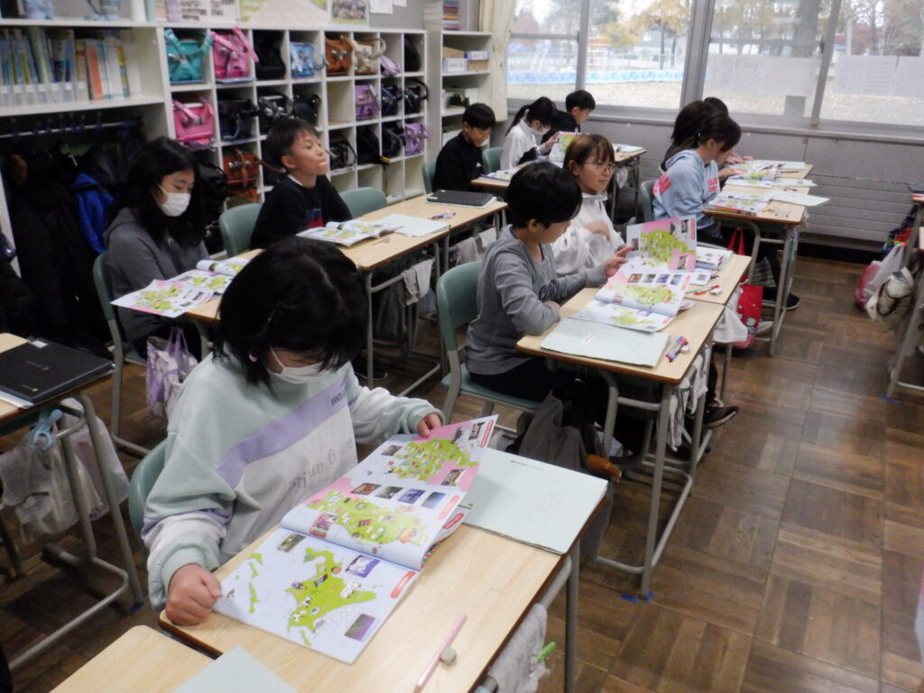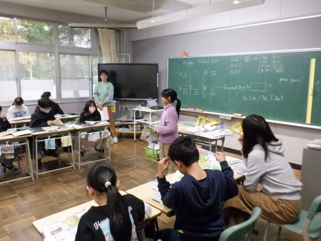 5年生の外国語学習では、「行ってみたい都道府県」をテーマに、英語でのクイズ形式の授業を行いました。問題の出題者は、その都道府県の有名な建物や食べ物に関するヒントを、英語と身振りを交えて工夫して伝えました。時にはユーモアも交えながら、上手に表現する姿が見られました。この活動を通して、子どもたちは楽しみながら英語でコミュニケーションをとり、教室は大いに盛り上がりました。