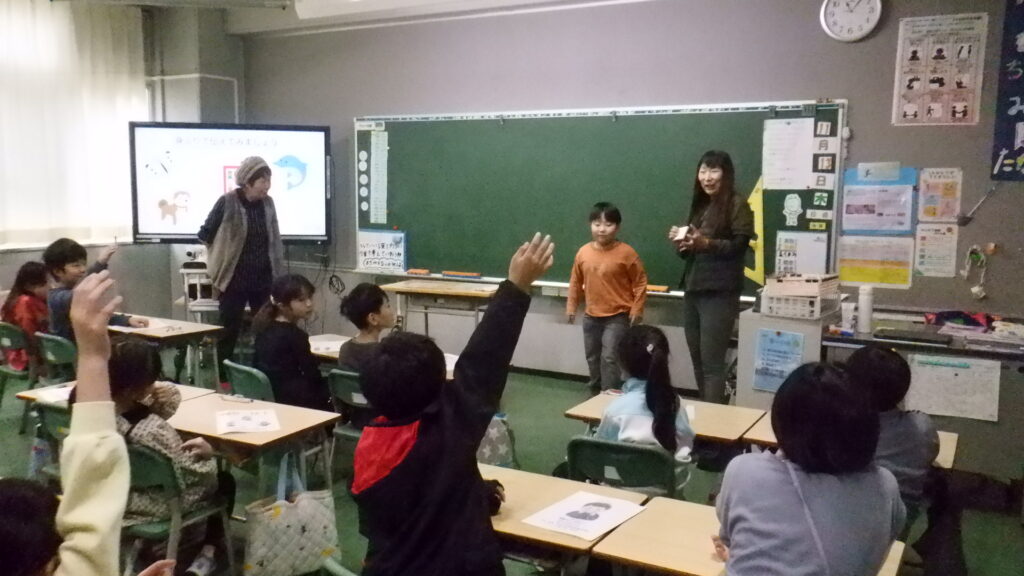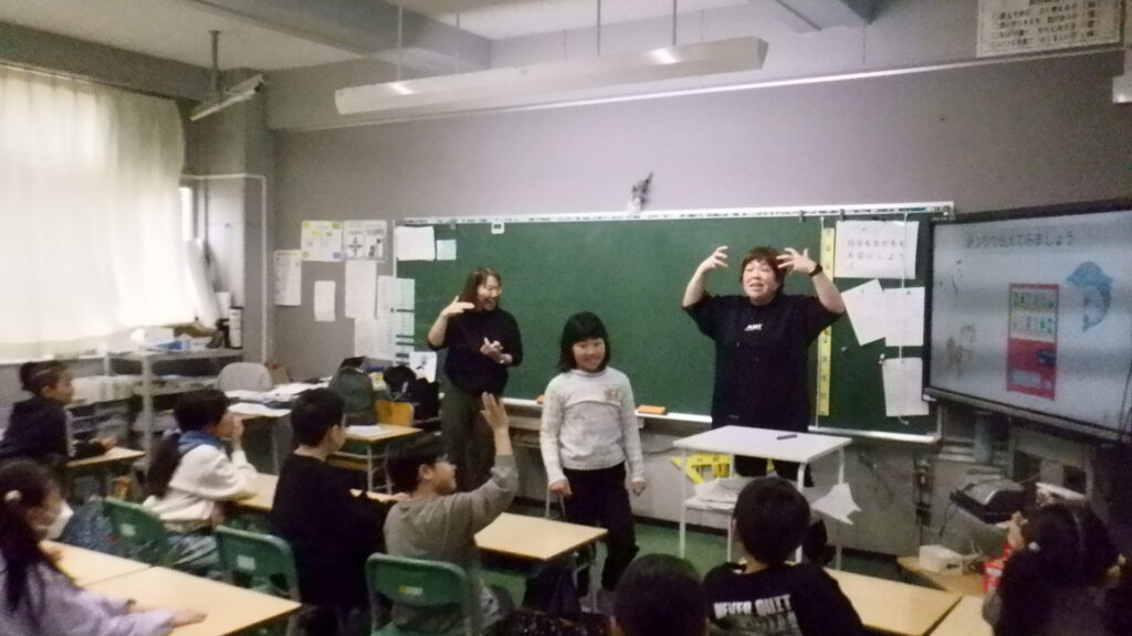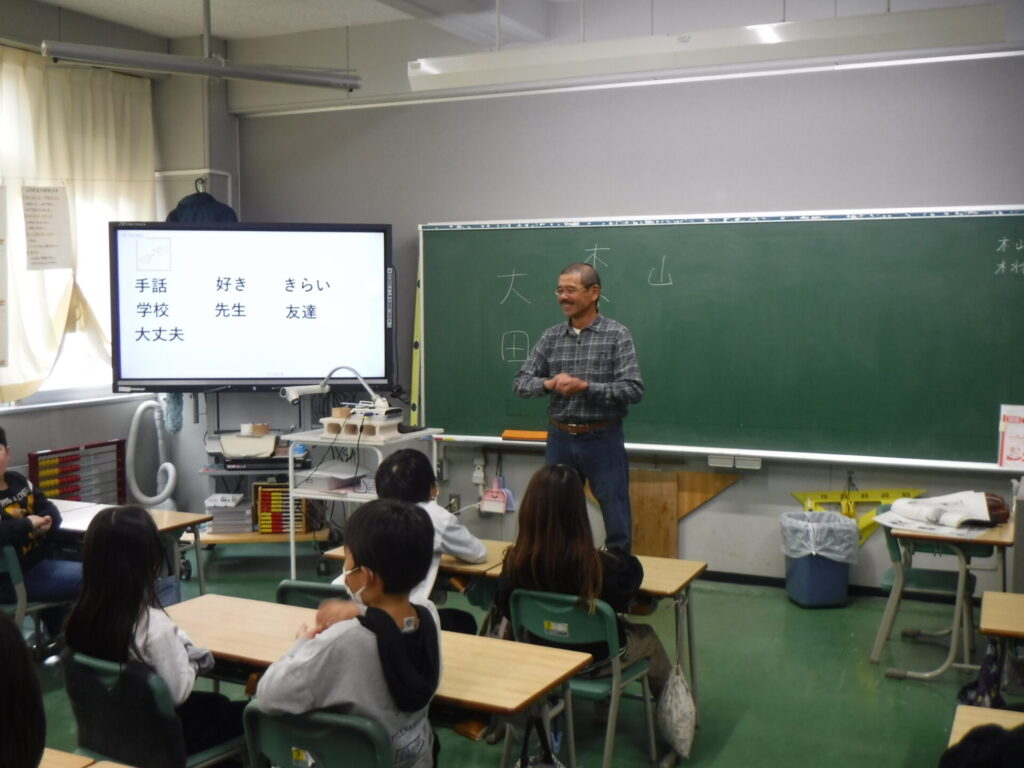 本日、江別市役所の方を講師にお迎えし、手話体験学習を行いました。学習の中で、教えていただいた手話を用いた自己紹介に挑戦しました。昨年度の手話の歌に取り組んだ経験が活かされ、児童生徒たちは意欲的に取り組み、あっという間に手話を覚えていました。