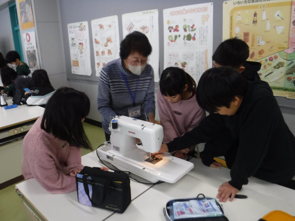 5年生の家庭科では、裁縫の学習としてミシンの使い方を学んでいます。昨日は、日頃からお世話になっているミシンボランティアの皆様にご協力をいただき、操作方法について学習しました。一人ひとりが困ったことがあると、ボランティアの皆様が優しく、そして大変丁寧に教えてくださったおかげで、子どもたちは安心して学習を進めることができました。