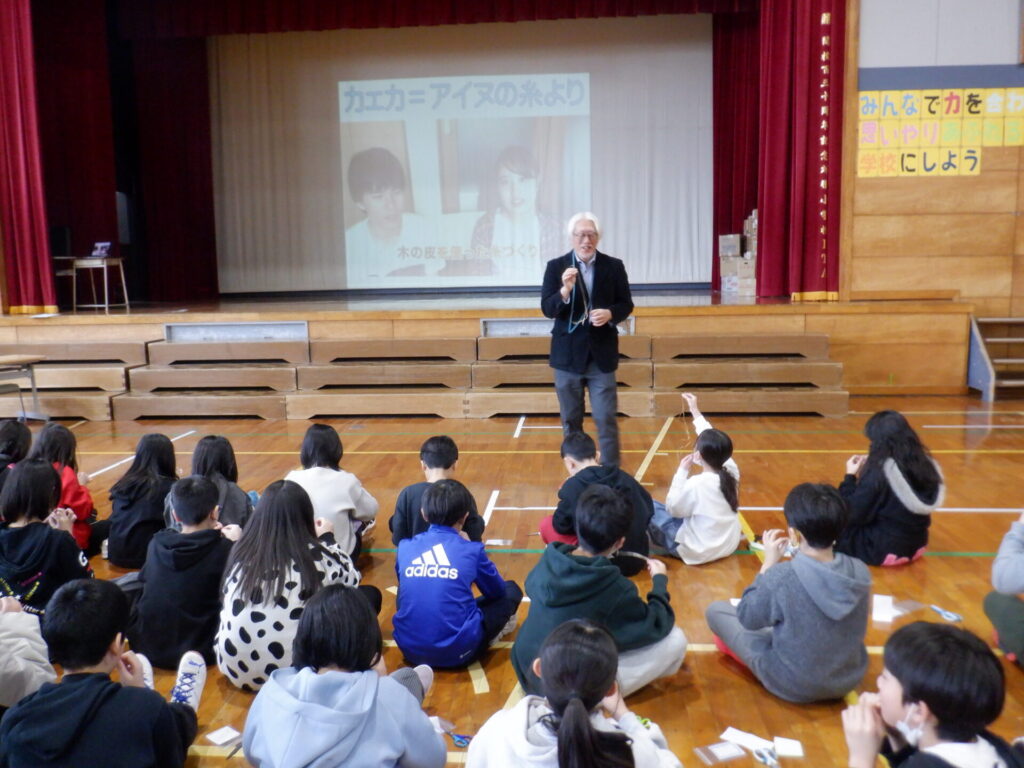 江別市と友好都市である高知県土佐市より、5年生3名の皆さんが対雁小学校を訪れ、一緒に学習を行いました。 アイヌ文化について学んだり、石狩鍋を調理して味わったりと、北海道ならではの文化や味覚に親しんでいただきました。本校の5年生も、歓迎の気持ちを込めて温かく迎え入れ、終始和やかな雰囲気の中で交流を深めることができました。