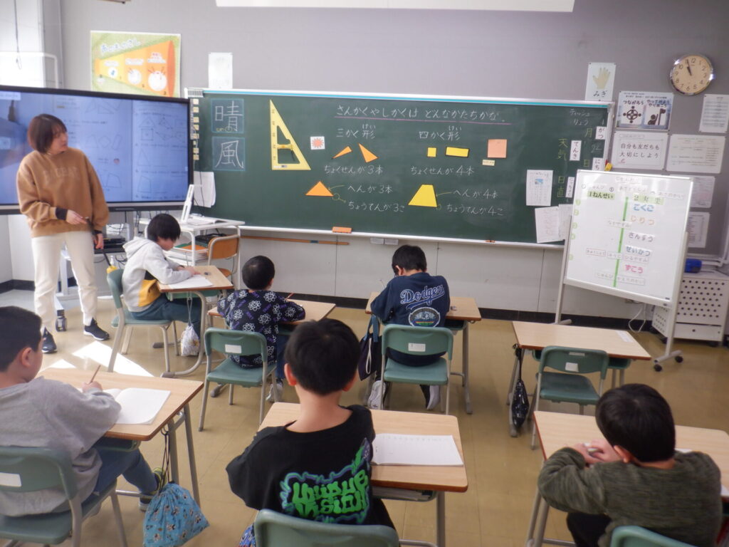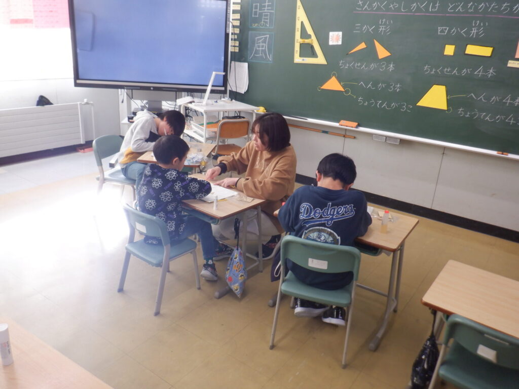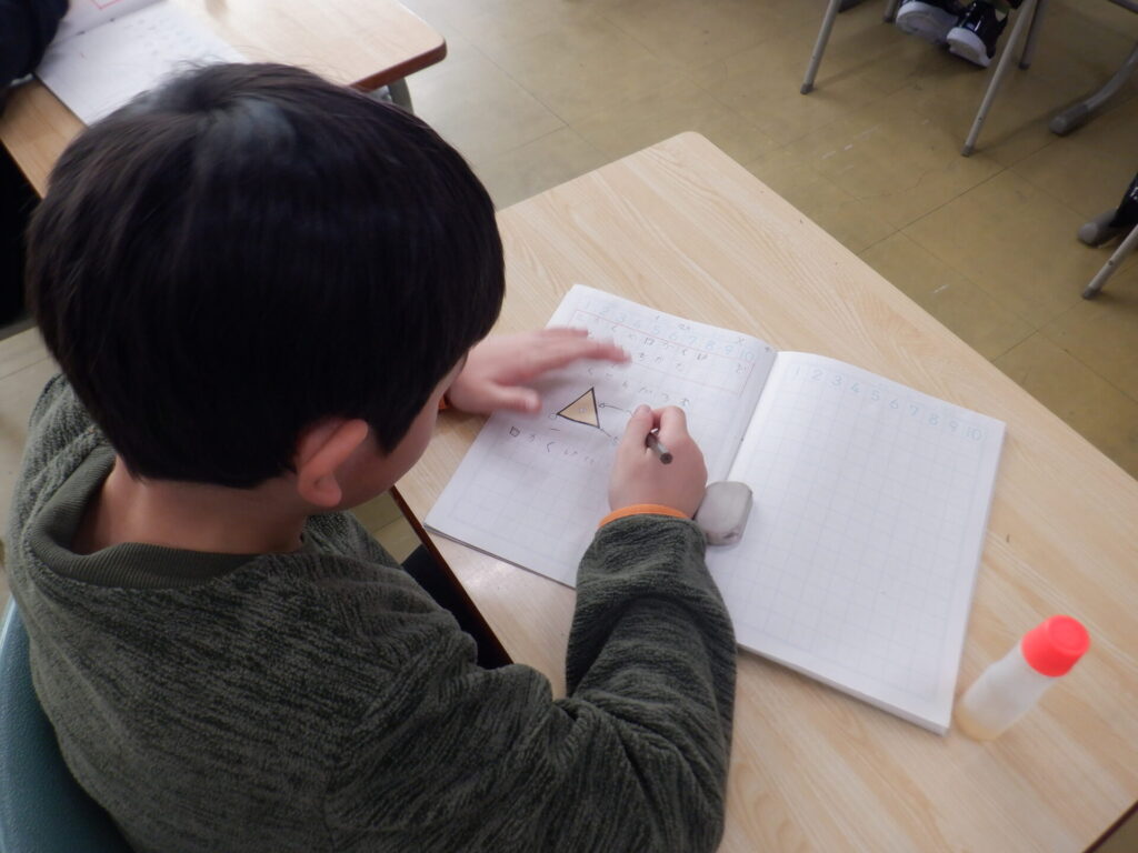 すくすく学級 算数「三角や四角のかたち」 投稿日時: 2026年1月22日 投稿者: tuisi-s すくすく学級の2年生は、算数で「かたち」の学習をしました。三角形や四角形の特徴を調べ、切り取った図形をノートに丁寧に貼りながら、分かりやすくまとめることができました。先生の話を一生懸命に聞く姿勢も大変立派でした。 投稿を閲覧した人数 11