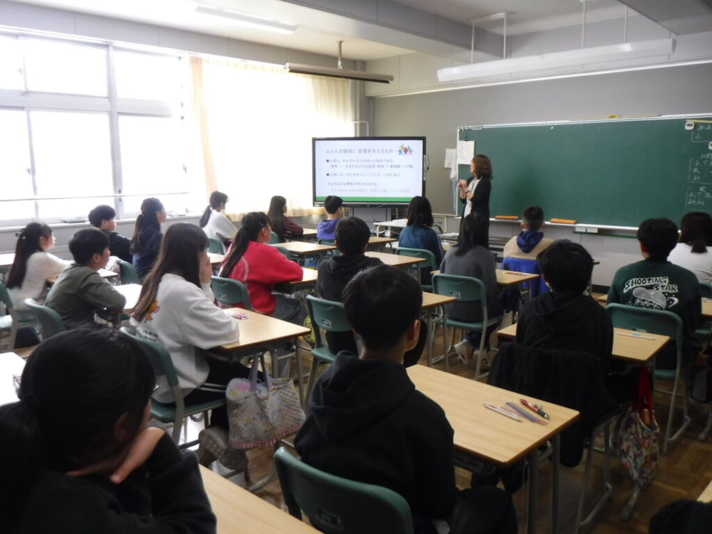 6年生「スクールカウンセラーによる学習」 投稿日時: 2026年1月29日 投稿者: tuisi-s 本日、6年生において、スクールカウンセラーによる学習が行われました。一方的な主張や我慢をせず、お互いのことを考え、対等な立場でよい関係を築くコミュケーションの仕方などを学びました。 投稿を閲覧した人数 8