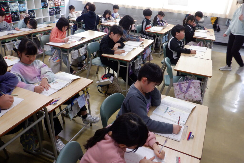 今年度の学習のまとめを行っています。 1年間を振り返り、楽しかった思い出を「したこと」「思ったこと」を中心に綴っている2年生。教科書を参考に要点をまとめる姿からは、この1年間の大きな成長が感じられます。集中して話を聞く態度や、丁寧に書かれたノートからも、3年生への準備が着実に整っていることが伝わってきます。
