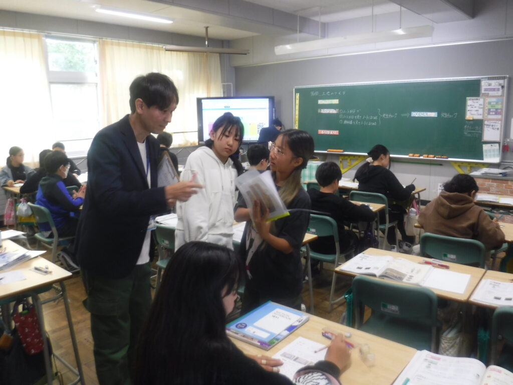 総合的な学習の時間で福祉をテーマに学習を進めています。本日は、静苑ホームから職員の方をゲストティーチャーにお招きし、車いす体験学習を行いました。車いすの正しい乗り降りの仕方や、安全な押し方の注意事項について、分かりやすく丁寧にご指導いただきました。その後、教わったことをもとにペアになり、実際に車いす操作に挑戦。乗っている人の気持ちや安全を考え、声をかけ合いながら慎重に操作することができました。今回の体験を通して、相手を思いやる心と具体的な介助の方法を学び、福祉への理解を一層深めることができました。