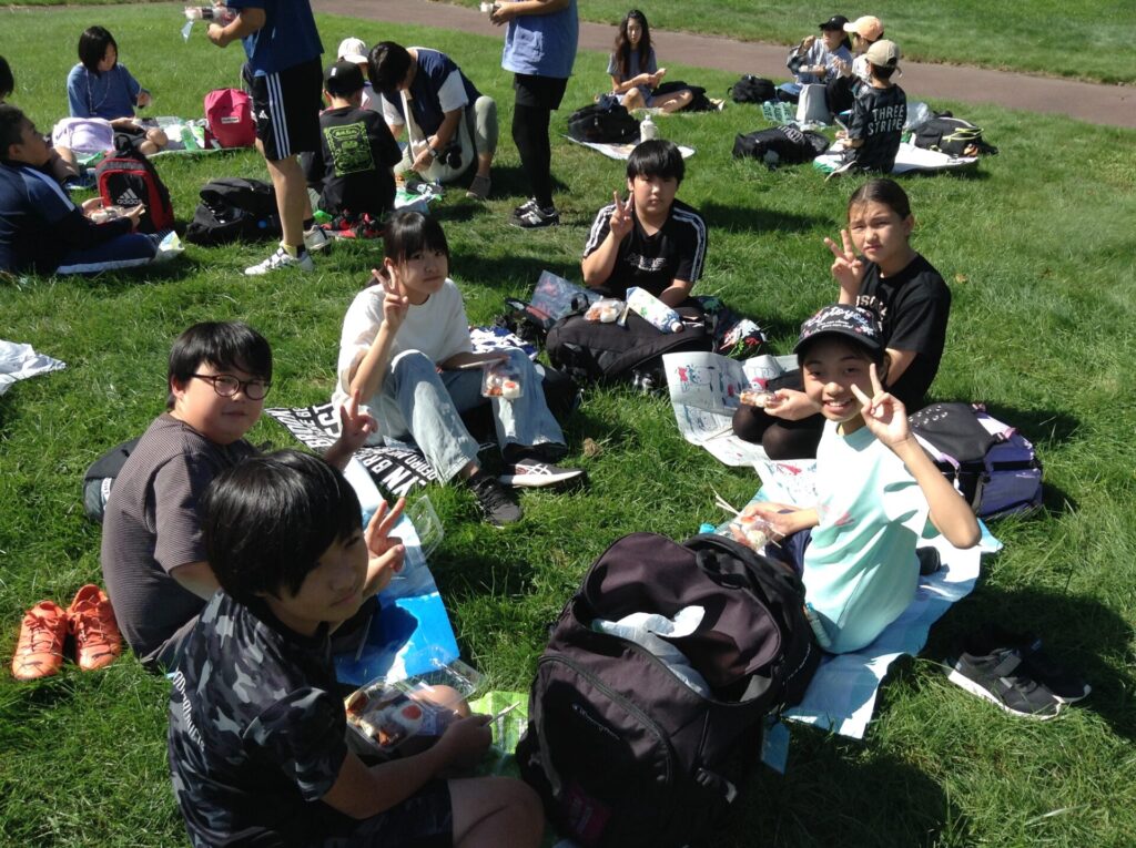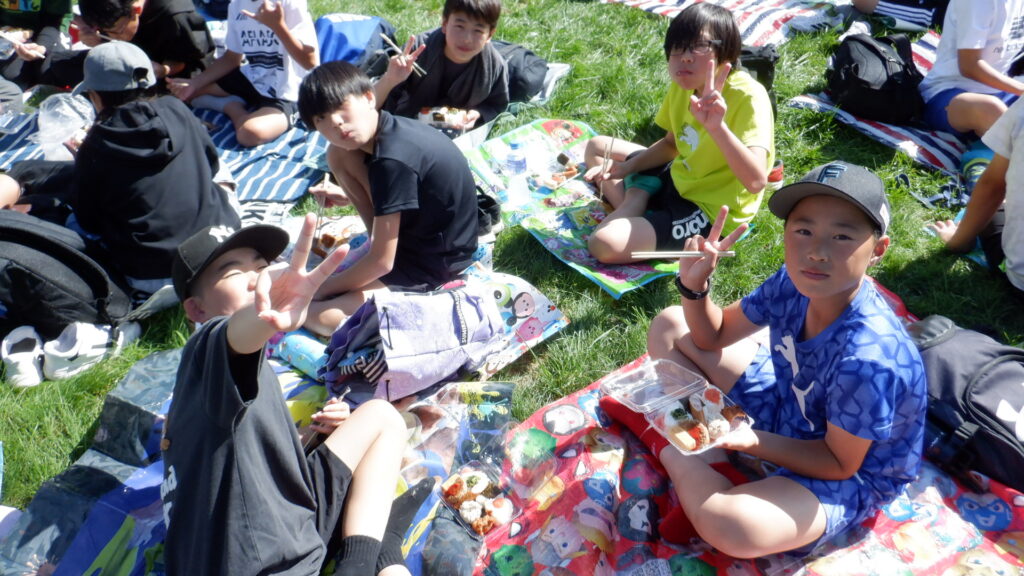 最高の天気。羊蹄山のふもとで、おいしいおにぎりを頬張る。