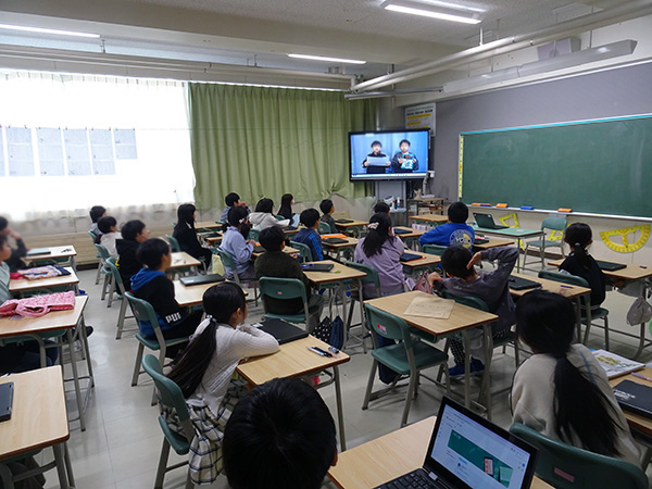 当日は、事前に録画した発表動画を視聴し、どの本を読んでみたいかをタブレットを使って投票しました。発表では、本のあらすじや魅力が分かりやすく伝えられ、聞いている児童も興味をもって視聴する姿が見られました。