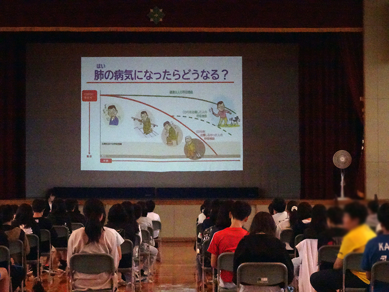 講話の中では、タバコに含まれる有害物質や、肺への悪影響について詳しく学びました。