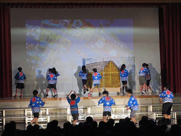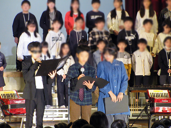 各学年が、これまでの学習内容をもとに、歌や音楽、器楽、劇などさまざまな形で発表しました。