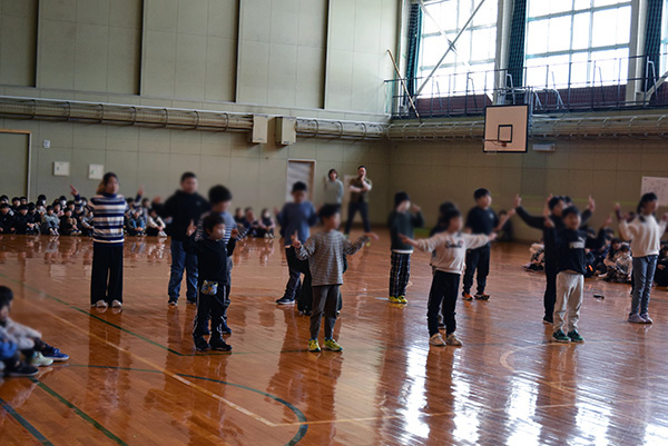 1年生から5年生、なかよし学級の在校生は、合唱やダンス、心を込めた劇や呼びかけを披露しました。それぞれの学年が工夫を凝らした出し物を通して、卒業する6年生へ「ありがとう」のメッセージを届けました。