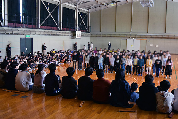 卒業式を間近に控え、全校生徒で心を通わせる温かいひとときとなりました。