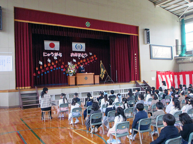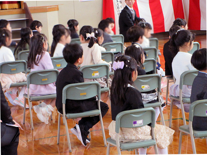 3つのクラスに分かれた子どもたちは、担任の先生の話をしっかりと聞き、これから始まる学校生活に目を輝かせていました。